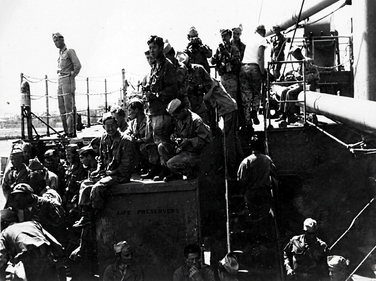 Below: Scene on the ship going home in 1946 (Courtesy of 100th Battalion website)