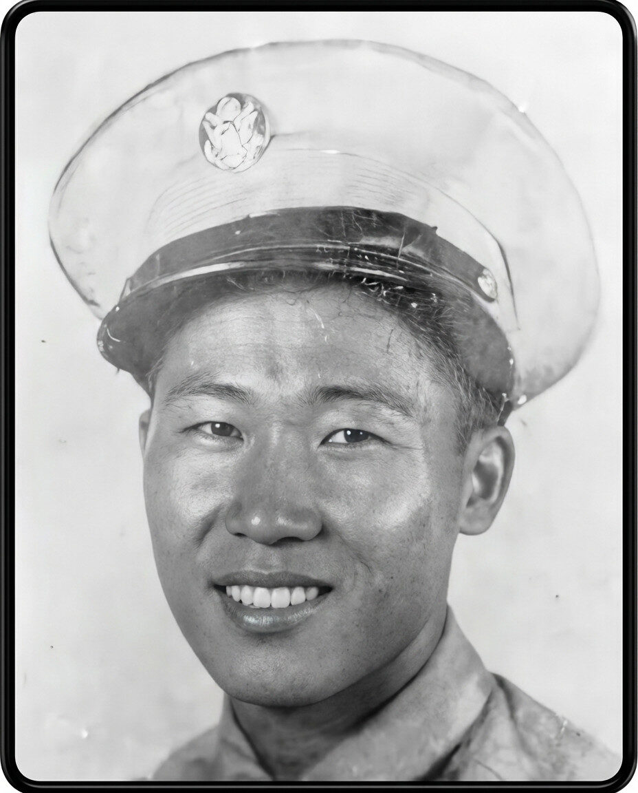 Nobuo registered for the draft on June 30, 1942, Local Board No. 5, Royal School, Punchbowl Street. At the time he was living with his family at 593 Cooke Street, Kakaako, Honolulu. He and his father were employed as carpenters by the U.S.E.D. (U.S. Engineering Department) at Schofield Barracks as carpenters. His point of contact was his father, Paul S. Amakawa. He was 5’6” tall and weighed 138 pounds.