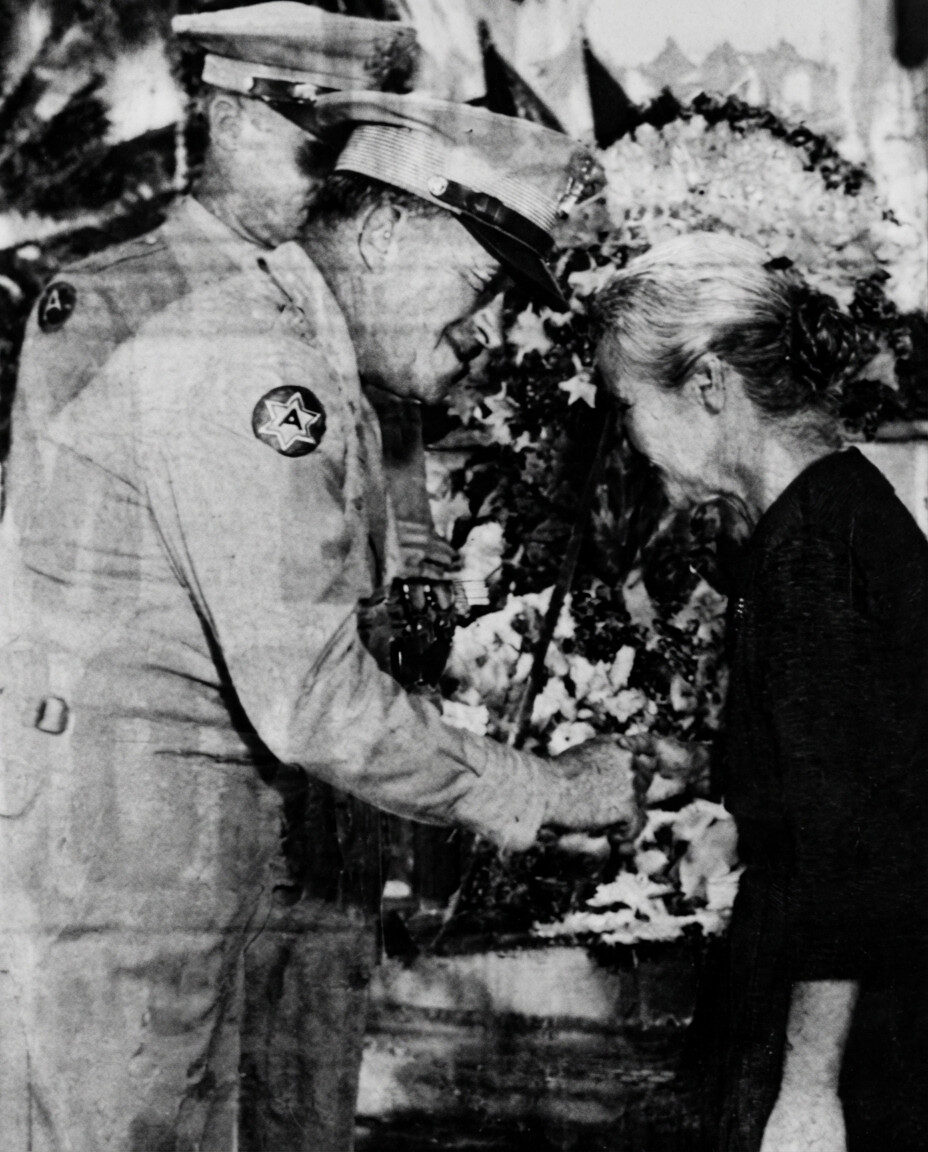 Right:  Mrs. Murata receiving a Gold Star button