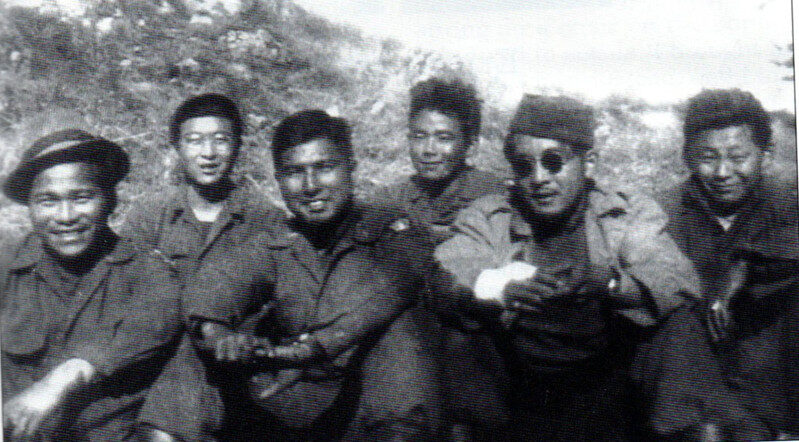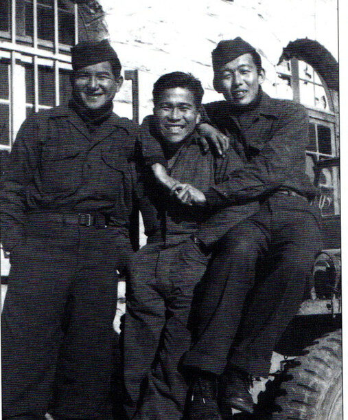 Below: Group of 2nd Platoon men, likely late 1944/early 1945, Maritime Alps, left to right – Roy Kanno, Roy Gikiu, Sadaichi Kubota, Danny Kuniyoshi, Mike Takemoto, Hideo Takahashi