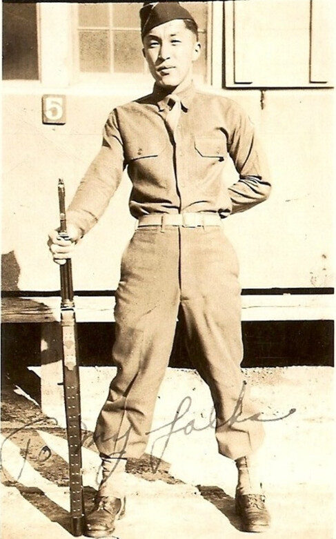 Betty said that he was one of the first men from Minidoka to volunteer. His enlistment was reported in the Tacoma Sunday Ledger-News Tribune on May 16 as being among eight former Puyallup Valley youths from Minidoka Resettlement Camp to join the Army.