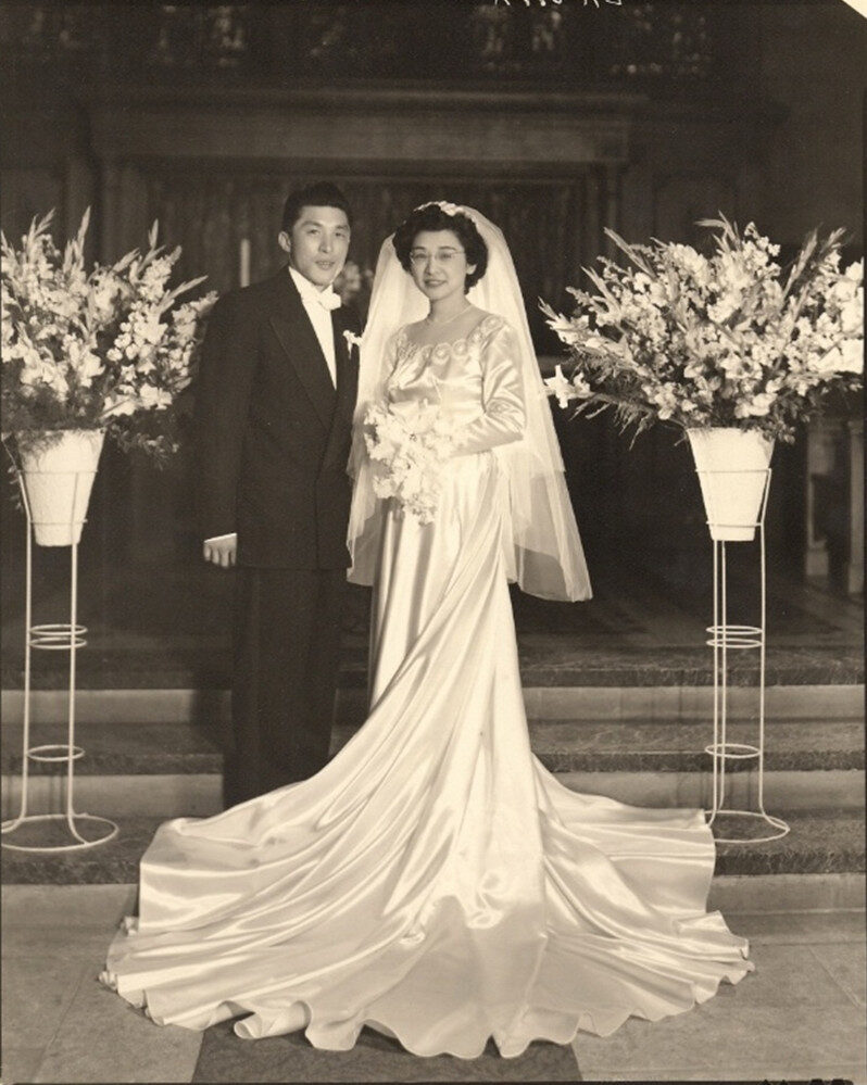 On April 9, 1950, Terry and Masae were married in Chicago. She had also been incarcerated with her family at Minidoka. Since he worked as a auto mechanic, the family recalls that his sister Betty scoured his hands with powder and bleach before the wedding.
