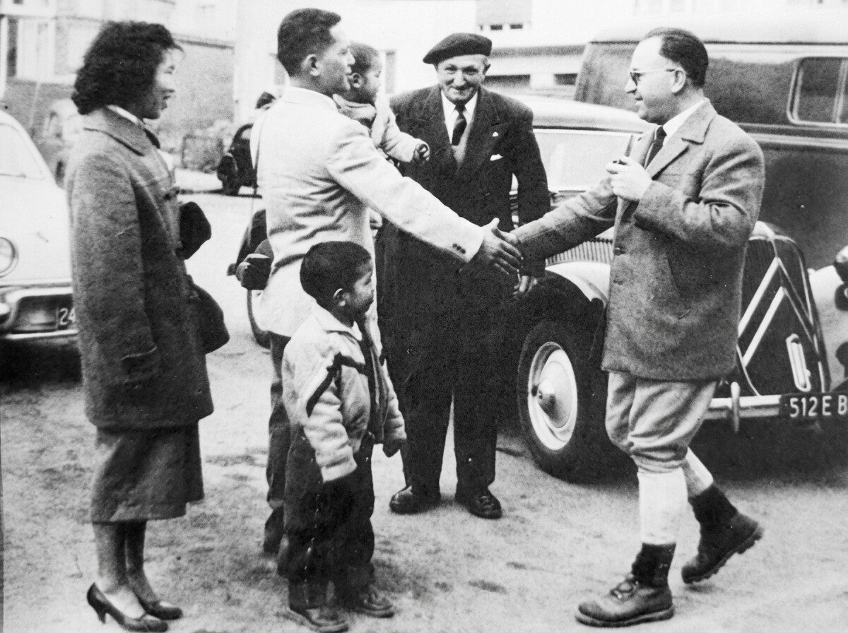 In the spring of 1960, Master Sergeant Holck was stationed in Bad Kreuznach, Germany, with the Headquarters Detachment, 8th Infantry Division. He, his wife, and two of their children visited Bruyères – as he later recalled – on a “pilgrimage of peace to places I had only seen through the sights of a rifle.” He wanted to “see places I had fought, the people who had helped us, and especially I wanted to find out if they still remembered the men from Hawaii.”